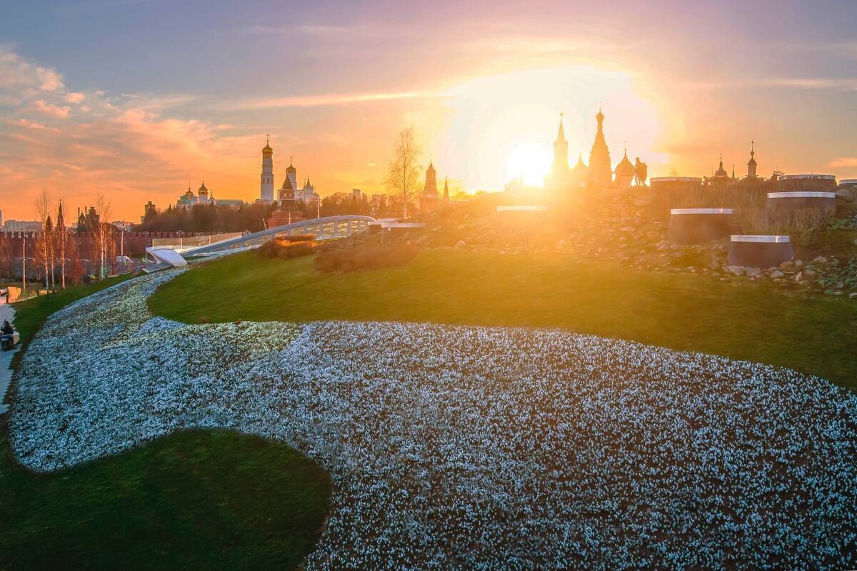 В парке "Зарядье" стартовало масштабное цветочное ландшоу "Волны цветения".