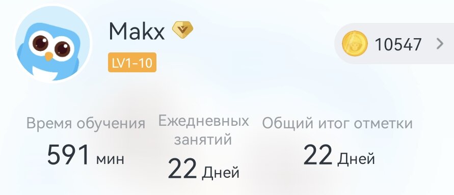 Позади уже 3 недели обучения. По подсчетам программы я занимался почти 10 часов, но время она считает странно, где в 2 раза меньше засчитывает, чем проходит в реале.