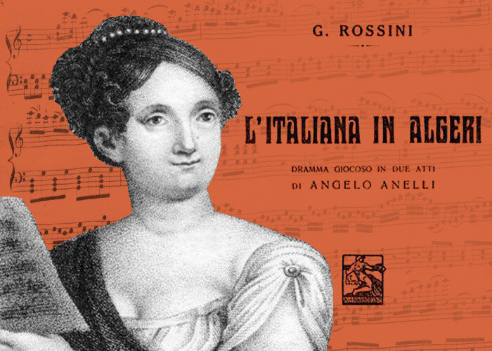 «Вива Марколини! Вива Россини!» — скандирует аудитория старейшего венецианского театра Сан-Бенедетто. Распахиваются ставни лож, и зал наполняется стаей белоснежных голубей. Это значит, что публика в восторге от новой оперы «Итальянка в Алжире». И хотя на календаре май 1813-го, и уже нет певцов-кастратов, барочные традиции — получать все удовольствия «в одном флаконе» — по-прежнему сильны. Во время скучных речитативов secco в зале разносят вино, пиво, закуски, можно поболтать с приятелями или развлечься в игорном зале за карточным столом. Но как только начинается ария, всё внимание на сцену. Россини написал партию Изабеллы из «Итальянки в Алжире» для обладательницы редчайшего контральто Мариетты Марколини, одной из самых выдающихся певиц того времени и по совместительству его новой пассии. Всезнающий Стендаль утверждал, что она ушла к Россини от брата самого Бонапарта. Ему 21, она, как минимум, на 12 лет старше, да и не красавица вовсе. Но мужчины, услышав её «женский бас» — мягкий, гус