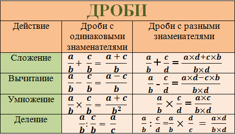 Дроби. Формулы сложения, вычитания, умножения и деления.