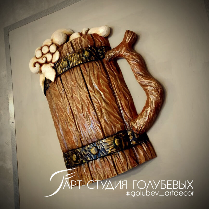 Мы уже много лет для барельефов, нестандартных по тех.требованиям используем такой, на первый взгляд простой, но дико удобный материал как пенополистирол. Его удобно использовать как основу под барельеф, если у изделия должен быть минимальный вес. Такое решение используется в подвесных конструкциях, потолках или на фальшпанелях, как в данном случае, или если барельеф выполняется в виде картины/панно для пересылки в другой город. В настенных барельефах мы стараемся не отдаляться от классической технологии набора массы, как это популярно сейчас в столице, т.е. ведем работу гипсовым материалом. Кружка изготовлена для ресторана Тихий Дон в городе Семилуки, в котором уже ведутся последние штрихи перед открытием. По вопросам заказа пишите нам в комментариях любой мессенджер или звоните 89009574022