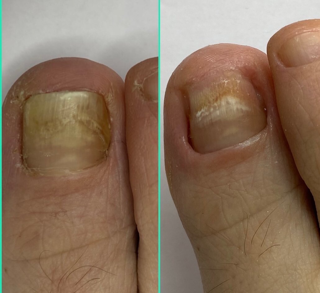 На данных фото представлен Онихолизис - это отслоение ногтя от ногтевого ложа, причин такой деформации может быть много, но как правило их подразделяют на внутренние (заболевания внутренних органов, приём медикаментов, кожные заболевания и т.д.) и внешние ( травма, некачественный 💅 маникюр, работа с агрессивными чистящими средствами и т.д.)