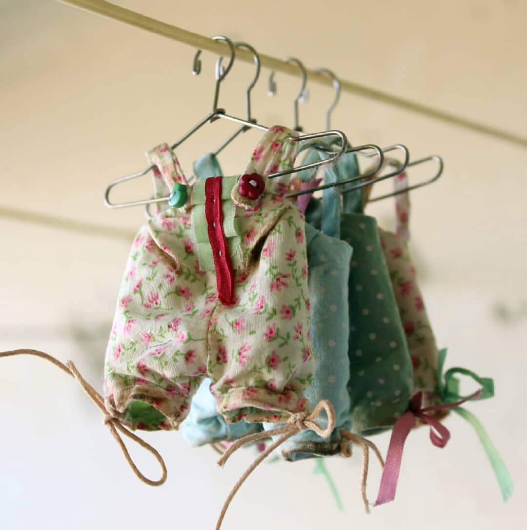2. Лямки из основной ткани – 2 детали 3. Пуговички – 3 шт 4. Ленточки, вощеный шнур по желанию))) Раскрой Раскладываем и переводим детали на ткань, не забывая, что верх и подклад комбинезона из разных материалов, припуски на шов включены (3-4 мм). Обязательно переводим все метки с выкройки!!! Вырезаем все детали. После раскроя, у нас получается 6 деталей (2 лямочки, 2 подклада, 2 верха) в зеркальном отражении. Пошив Все детали вы можете собирать, как на швейной машинке, так и вручную швом "назад иголку" Первое, что мы делаем с деталями комбинезона - это закладываем (добавляем объем под пузико слона) и закрепляем складки несколькими стежками, разметка под складку переносится с выкройки на материал при раскрое. Складку закладываем от центра к спинке. Складку мы делаем и на деталях верха и на деталях подклада. Складываем вместе детали верха и подклада лицом к лицу и прокладываем строч