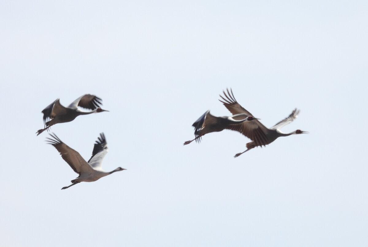 Весна 2022 года затяжная, холодная и запоздалая. Озера тают медленно и птицы на них почти не садятся. А вот мелкие озерки оттаяли и на них вовсю уже кормятся жаворонки и трясогузки; сидят в траве у берега чибисы и огаря немногочисленными парами; изредка, с протяжным криком, перелетают лебеди-кликуны. А сегодня, 19 апреля, на глаза попались журавли (а первые встречи отмечаются в этом году к 15 апреля). Стайка из 11 особей, из которых 7 являются серыми журавлями, а 4 – даурскими, кормились на берегу оттаявшего небольшого озерка в степи за с. Кыра. Тут же, в высокой траве, у среза воды, сидело с десяток гусей-гуменников, у них уже идет массовый пролет, и эта стайка гусей здесь ненадолго; они отдохнут и полетят дальше. А журавли порадуют нас своим присутствием еще достаточно долгое время, если им конечно не мешать.