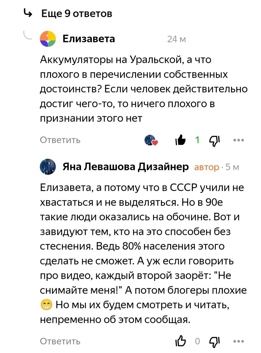 Только честно! Ответьте хотя бы себе на вопрос прямо сейчас, смогли бы перечислить любому человеку 10 своих положительных сторон? Не важно, знакомы вы или нет. А на камеру? Или в соц.сетях? Если посмотреть разные опросы на улицах, в России люди более зажаты, чем в других странах. Многие вообще бегут от камеры как от огня. Это смесь животного страха и стеснения. Редкие граждане могут спокойно ответить на любой вопрос или что-то рассказать. Вот недавно обсуждали этот вопрос в комментариях. Мужчина считает, что перечислять свои достоинства в статье на Дзене не прилично! И не способствует лояльности аудитории. Добавляя, что "нормальный человек и так всем нравится и его непременно оценят". А кто оценит? Родственники, друзья, ближайшее окружение? Если мы движемся далее, и говорим уже каких-то услугах или товарах, клиентах, то как можно отказаться от перечисления достоинств мастера или товара? Как заказчик должен вообще захотеть получить эту самую услугу или товар? Ему и задали подобный вопро