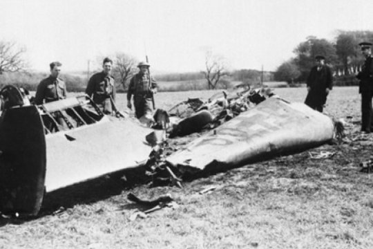 Самолет Me-110, на котором летел Рудольф Гесс, потерпел крушение в Шотландии. Фото: Gettyimages.ru.