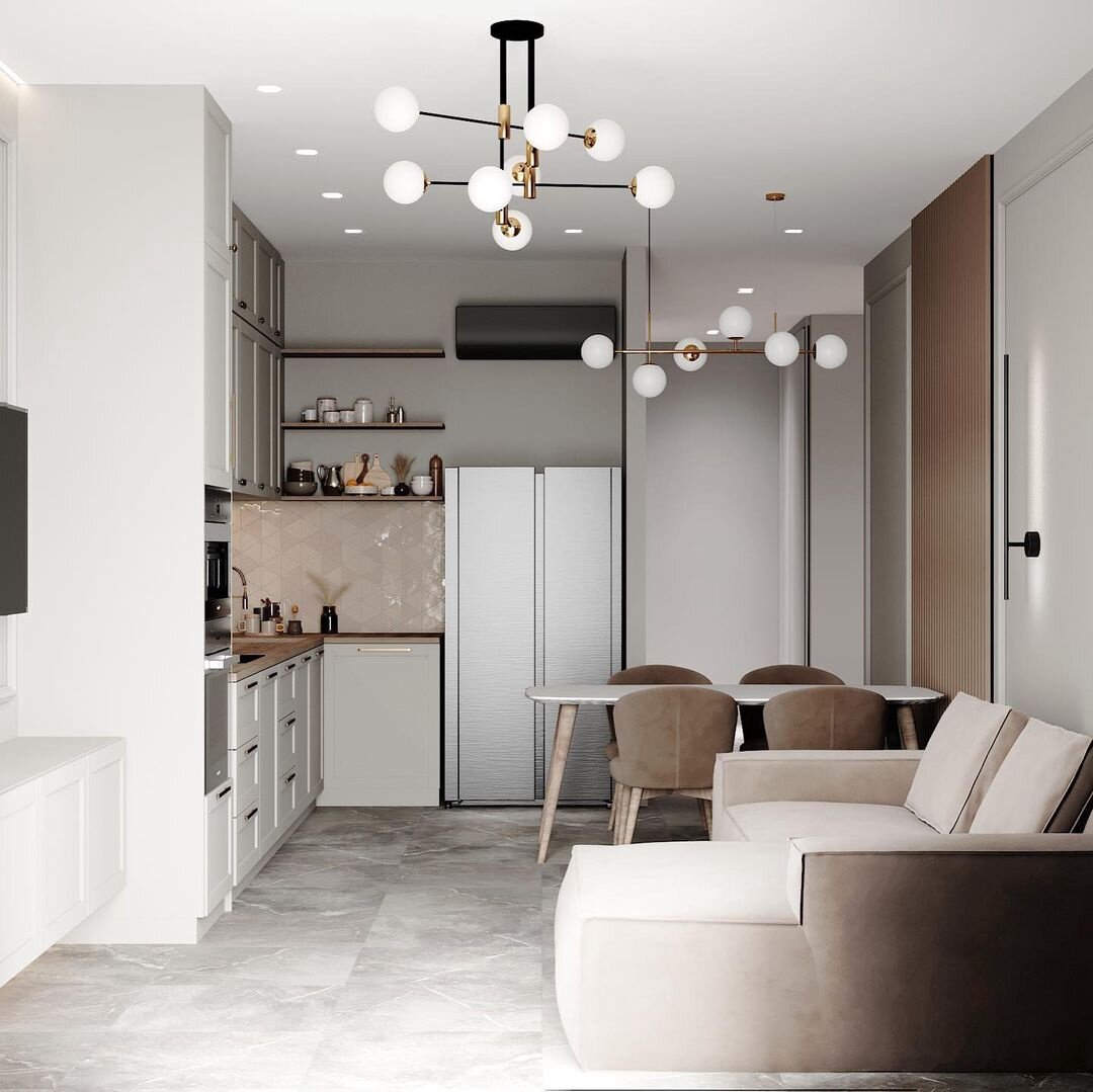 Сейчас наш штатный дизайнер Юлия Козлова разрабатывает дизайн-проект в современном стиле с элементами скандинавского стиля для квартиры, расположенной в ЖК Три Ветра на берегу Финского залива. Общая площадь квартиры - 140м2. На данный момент готовы только визуализации кухни-гостиной. Посмотрите, какое изящное помещение у нас получилось🔥 Отправной точкой были кухонные фасады: их заказчица выбрала заранее. Оттенок стен был подобран так, чтобы быть максимально приближенным к цвету кухонных фасадов. 📍Акцентным центром кухни будет зона, отделанная рейками из МДВ в шпоне. Это уже второй наш объект в ЖК Три Метра. На данным момент на этом объекте наши мастера выполняют ГКЛ-работы. Второй объект находится на стадии завершения✅ Рассчитать стоимость вашего ремонта можно за 20 секунд тут. Как вам визуализации кухни-гостиной? Любите скандинавский стиль в интерьере? #дизайн интерьеров #скандинавский стиль #кухня-гостиная #дизайн проект #визуализация #современный стиль