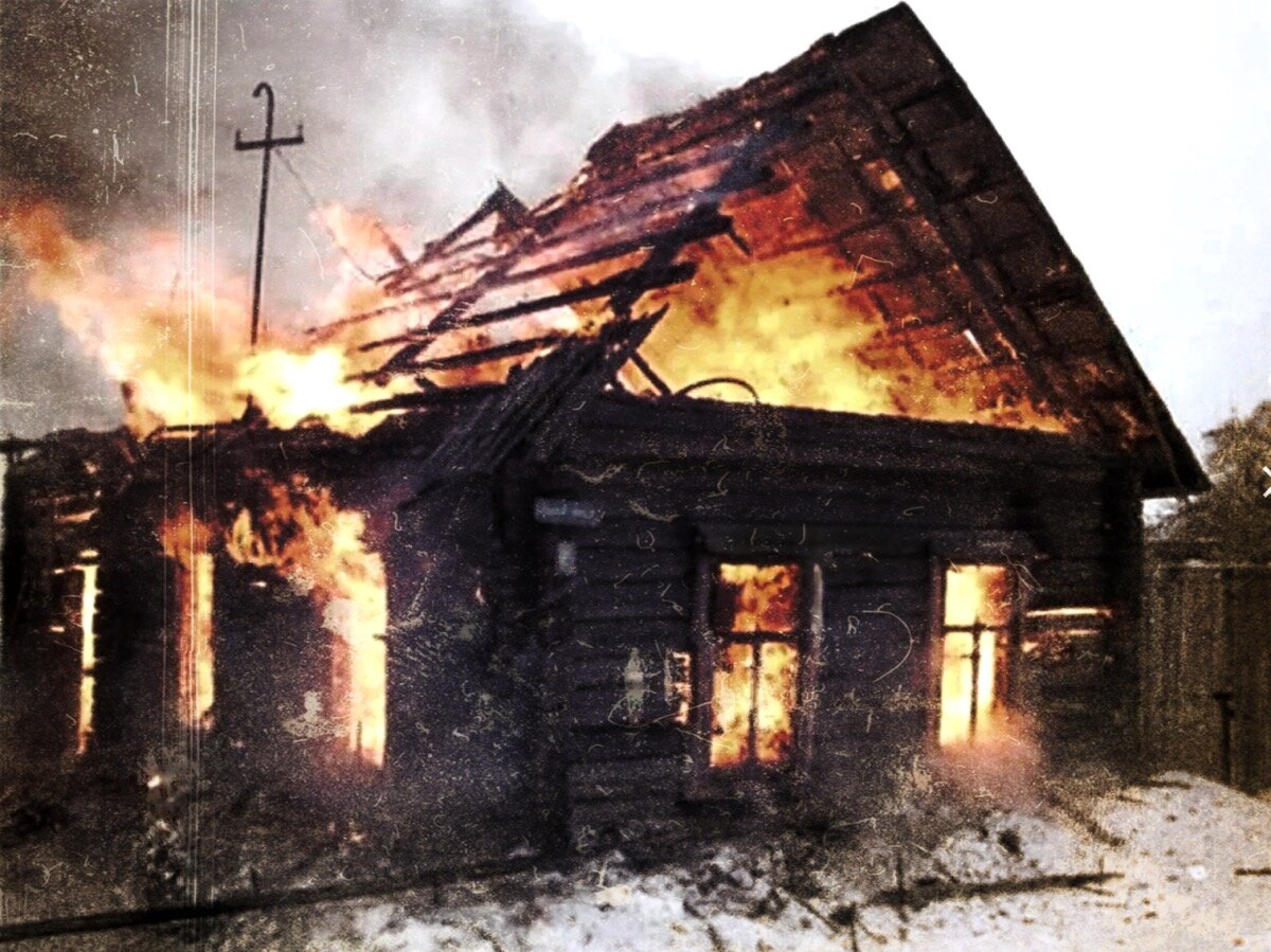 Всполохи пламени отражались на лицах людей. Послышался вой сирены, оранжевые блики перемешались с синими огнями, которые разбрасывал вокруг маячок пожарной машины. Дом догорал. Прижав узелок к груди, на последние, жидкие языки огня смотрела худенькая женщина без возраста. Когда последний погас, она вздохнув, пошла к станции.