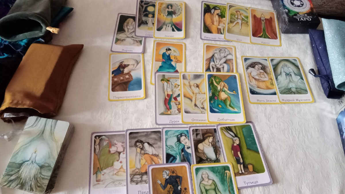 Как всегда, предполагалось 5 карт изначально-))) Вы вот, как ни странно и ваш мужчина через тени идете в ресурс. Посмотрите как: жертва, сирота и Звезда. К тому же - первопроходец. В общем, условно получается так: "у меня нет того, чего я хочу, мне никто не поможет в этом, ну и ладно, пойду, найду сама все, за одно и вырасту, и уважать себя начну". У мужчины: "я дурак, все тут профукал что мог, пил, гулял, предавал, врал, делал больно, ну вот у меня уши ослиные теперь и я к себе придираюсь, зато я таким больше не буду". Лекарь вышел, он действительно пытается жить по-другому и помогать тем, кто в нем нуждается, даже ценой своих ресурсов по раненному лекарю. Он так пытается взять свою жизнь под контроль. Оптимист и Добытчик и вы и он нацелены на поиск своих внутренних ресурсов и по итогу у нас вышел Санта Клаус с Хозяйкой. То есть - мужчина, готовый вкладываться и женщина, умеющая распределять ресурсы как надо. И какие отношения вы создаете? Мать Земля и Мудрый Мужчина - вроде бы перев