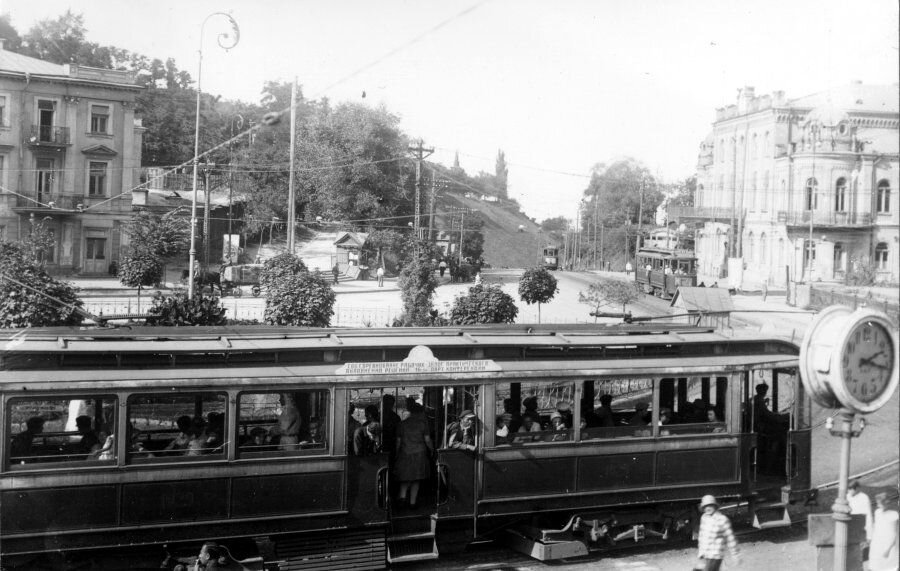 По широким, прекрасно вымощенным улицам центра бегают несколько новеньких автобусов. Киев замечательно красивый город. Киевляне не такие патриоты своего города, как одесситы, но все же город свой ценят высоко. Из любви к своему городу, очевидно, киевляне не любят сидеть дома и в хорошую погоду все высыпают на улицу.