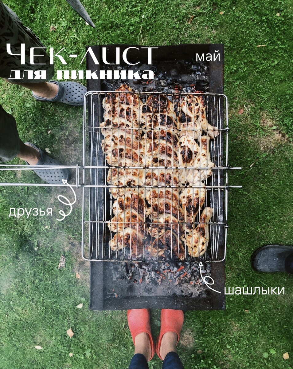 На носу открытие сезона шашлыков. ⠀ Помню, как в институте, каждый год в начале мая ездили группой на пикник и каждый год забывали взять что-то важное😂 Эта памятка для пикников не позволит вам ничего забыть: ⠀ ✅Плед или покрывало, карематы ✅Складные стулья и стол (если вы любитель комфорта всегда и везде) ✅Мангал ✅Шампуры и решетки для гриля ✅Уголь/дрова, разжигатель/топорик, спички ✅Посуда: тарелки, вилки, миски для общей еды, разделочная доска, ножи, стаканы, рюмки, котелок или кастрюля, контейнеры для остатков еды ✅Салфетки влажные и сухие, скатерть, туалетная бумага ✅Вода питьевая ✅Вода для мытья рук ✅Напитки: соки, компоты, газировка, если берете 🍷🍺 не забудьте открывашку и штопор ✅Термосумка с хладагентами для напитков и скоропортящейся еды или термопакеты. ✅Еда: мясо, рыба, сыр, хлеб, овощи, фрукты, зелень, соусы, специи ✅Средства защиты: зонтик, тент, крем от загара, репелленты от насекомых ✅Игры для детей и взрослых: мяч, бадминтон, водные пистолеты, дартс ✅Походная аптечка