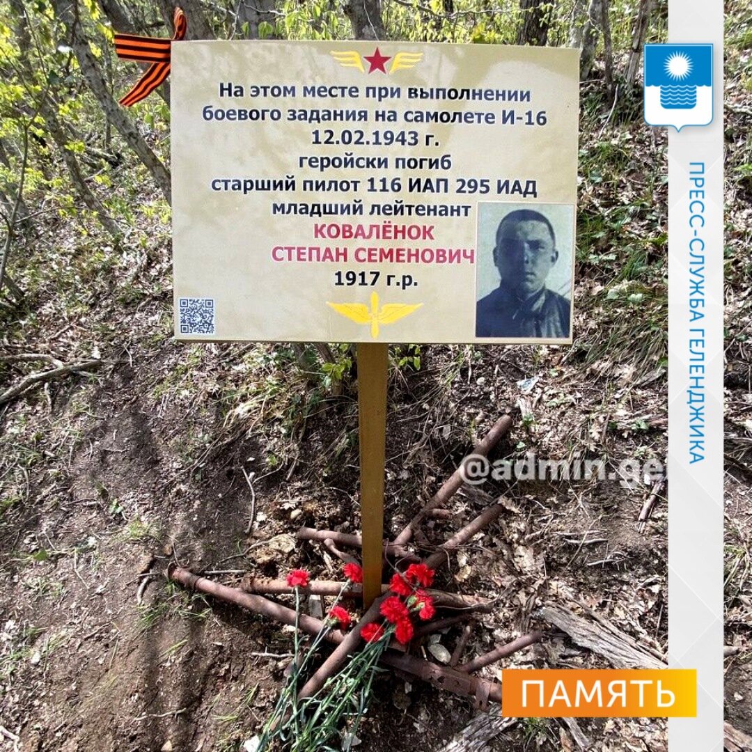 В феврале 1943 года младший лейтенант Степан Коваленок, при выполнении боевого задания, потерпел крушение и погиб в лесу горы Дооб (с. Кабардинка) в Геленджике. Мелкие обломки самолета И-16 с технологическим клеймом завода-изготовителя, а также останки летчика обнаружили специалисты поискового отряда «Кубанский плацдарм». Подняв документы и записи журналов боевых действий военных лет и сопоставив данные, удалось установить следующее: 12 февраля 1943 года, в период времени с 08:01 до 08:22 четверка советских истребителей И-16 вела над селом Кабардинка воздушный бой с парой фашистских истребителей «Мессершмитт Bf 109». На свой аэродром не вернулись два советский самолета. Пилот одного из них - младший лейтенант Степан Семенович Коваленок - погиб вместе со своей машиной, пилот другого - старший сержант Лукьянчук, сумел выпрыгнуть с парашютом. Согласно заявок пилотов люфтваффе, пилот Barkhorn Gerhard подал заявку на два сбитых самолета И-16. Согласно данных «ОБД-Мемориал», младший л