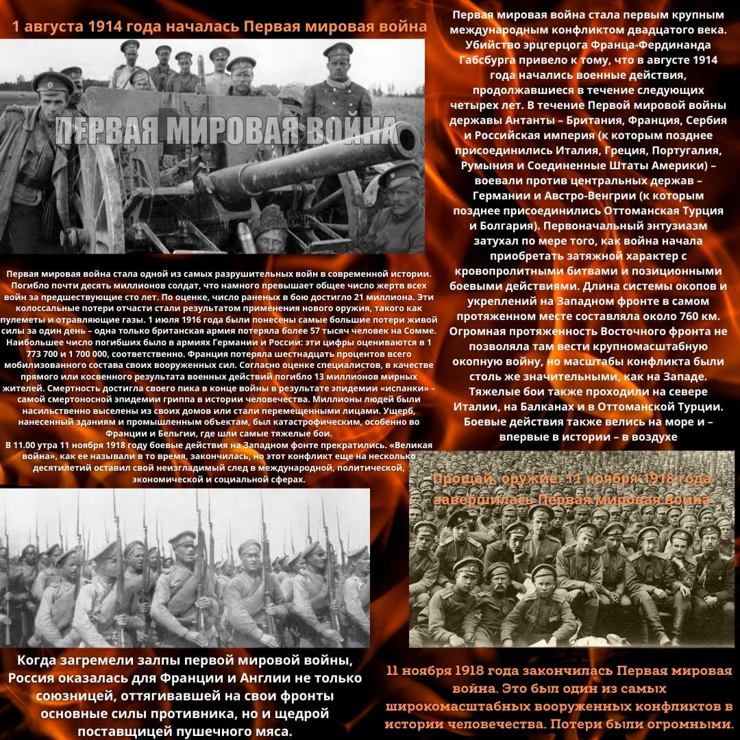Тематический плакат " Первая Мировая война" В работе отражены факты Первой Мировой войны Команда БОУ "Добровольская СОШ" 8 класс Арт-трек "Картинная галерея"