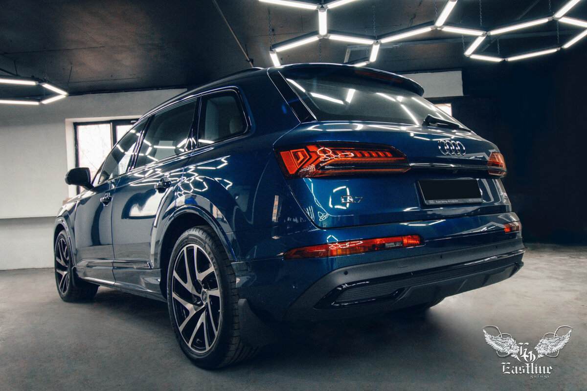 На этот раз к нам приехал абсолютно новый Audi Q7. Это полноразмерный немецкий кроссовер, привлекающий своей харизмой и внушительными размерами. Кстати, про размеры: на сегодняшний день выпускается второе поколение этих монстров, и производитель специально уменьшил его габариты, чтобы Q7 лучше лавировал по узким городским улочкам.