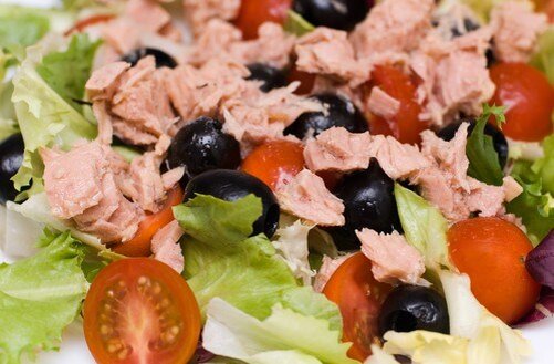 2.Выложите рыбную массу на листья салата. Сбрызните лимонным соком.
