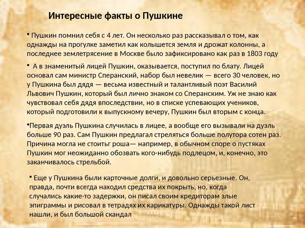 Интересные факты о А.С Пушкине.