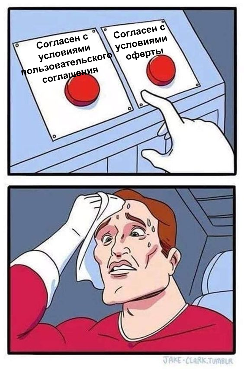 Человек может пользоваться сайтом, но не покупать ваши услуги. В таком случае он должен согласиться с пользовательским соглашением, а оферта ему в принципе будет не нужна. Правила возврата Продумайте всю процедуру и зафиксируйте её: