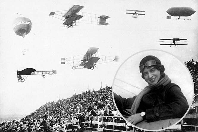 27 апреля 1910 года в Санкт-Петербурге состоялось открытие Первой русской авиационной недели с участием «королей воздуха». Для участия прибыли авиаторы со всей Европы, включая Раймонду де ля Рош, одну из первых авиатрис (именно так называли лётчиц) и бывшую актрису.