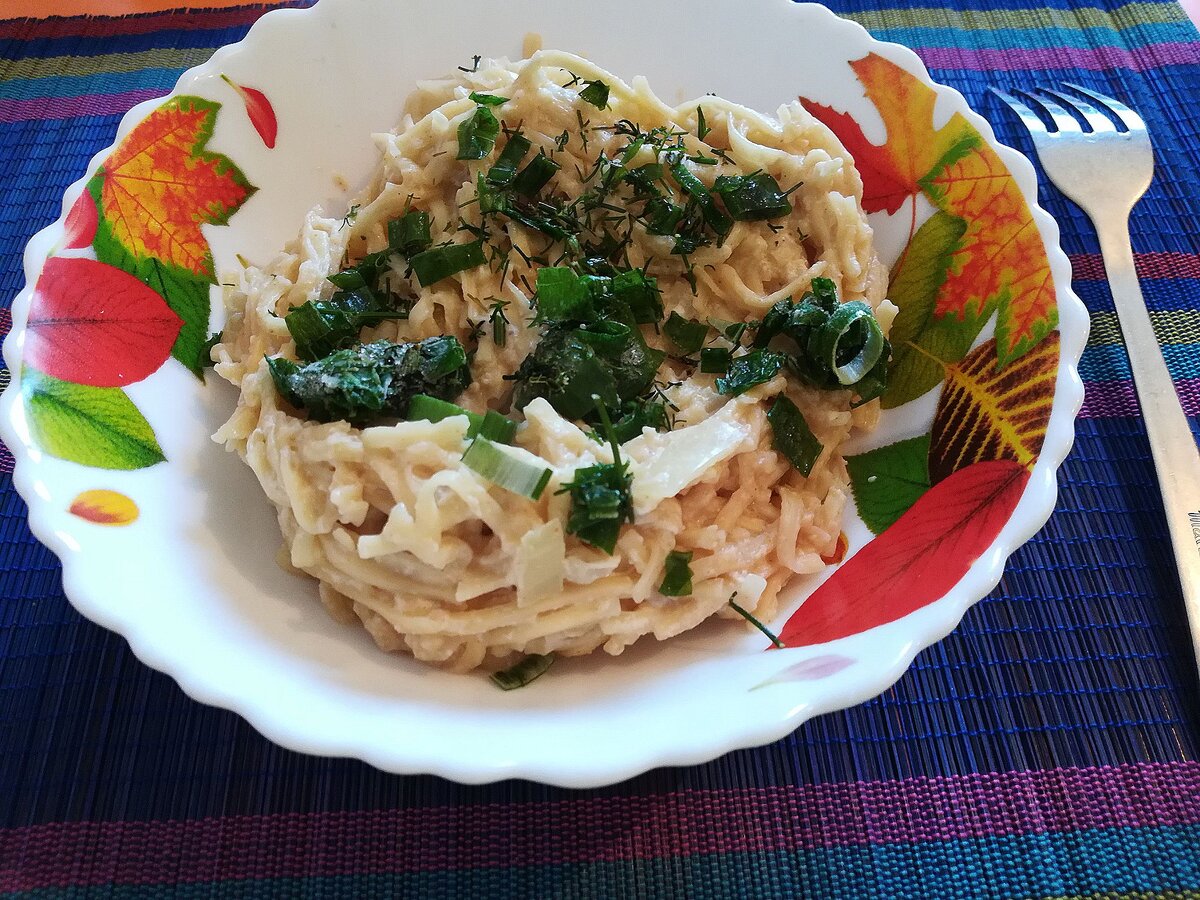 Вдруг поняла, что на канале нет рецепта приготовление покупной лапши быстрого приготовления. Такой простой рецепт, готовиться буквально минут десять. Мне потребовалось: Лапша быстрого приготовления Вода – 1 л., 2-3 зуб – чеснока Репчатый лук –половина большой луковицы или 1 средняя головка 3ст.л. кунжутного масла 1ч.л. – красного жгучего перца 2 ст.л. – соевого соуса Зелень – лук, укроп 100 грамм – филе курицы 3шт – куриное яйцо Приготовление: В казан или сковороду вок наливаю три столовые ложки кунжутного масло, кто не любит, можно использовать обычное масло. В раскаленное масло отправляю чайную ложку красного молотого перца, добавляю репчатый лук, нарезанный чеснок и нарезанное на кубики куриное филе. Как только появиться вкусный аромат обжаренных овощей, вливаю один литр воды. Вода закипела, отправляю лапшу быстрого приготовления четыре пластины. Лапше достаточно пару минут и отправляю взбитые яйца с солью. Вода впитывается в лапшу, достаточно быстро. Посыпаю зеленью. Добавить две