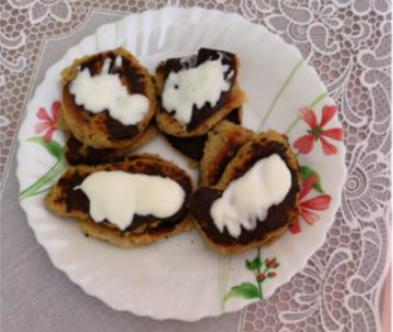 Выкладываем столовой ложкой тесто на сковороду в форме оладушек. Обжариваем с двух сторон на среднем огне на сковороде без масла. Подаем в горячем виде со сметаной или вареньем).