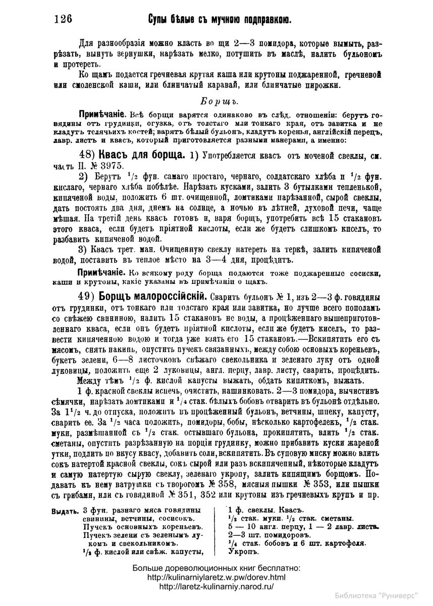 Кулинарные эксперименты: борщ малороссийский из книги Молоховец 1901 года.