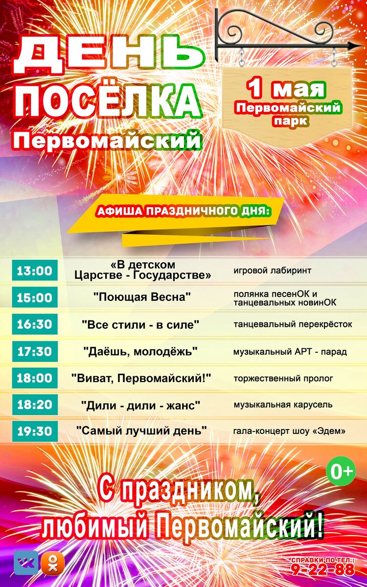 Приглашаем вас 1 мая на праздничные мероприятия, посвященные Дню поселка Первомайского: на площадках Первомайского парка: Ждем вас, друзья, ведь место встречи изменить нельзя!
