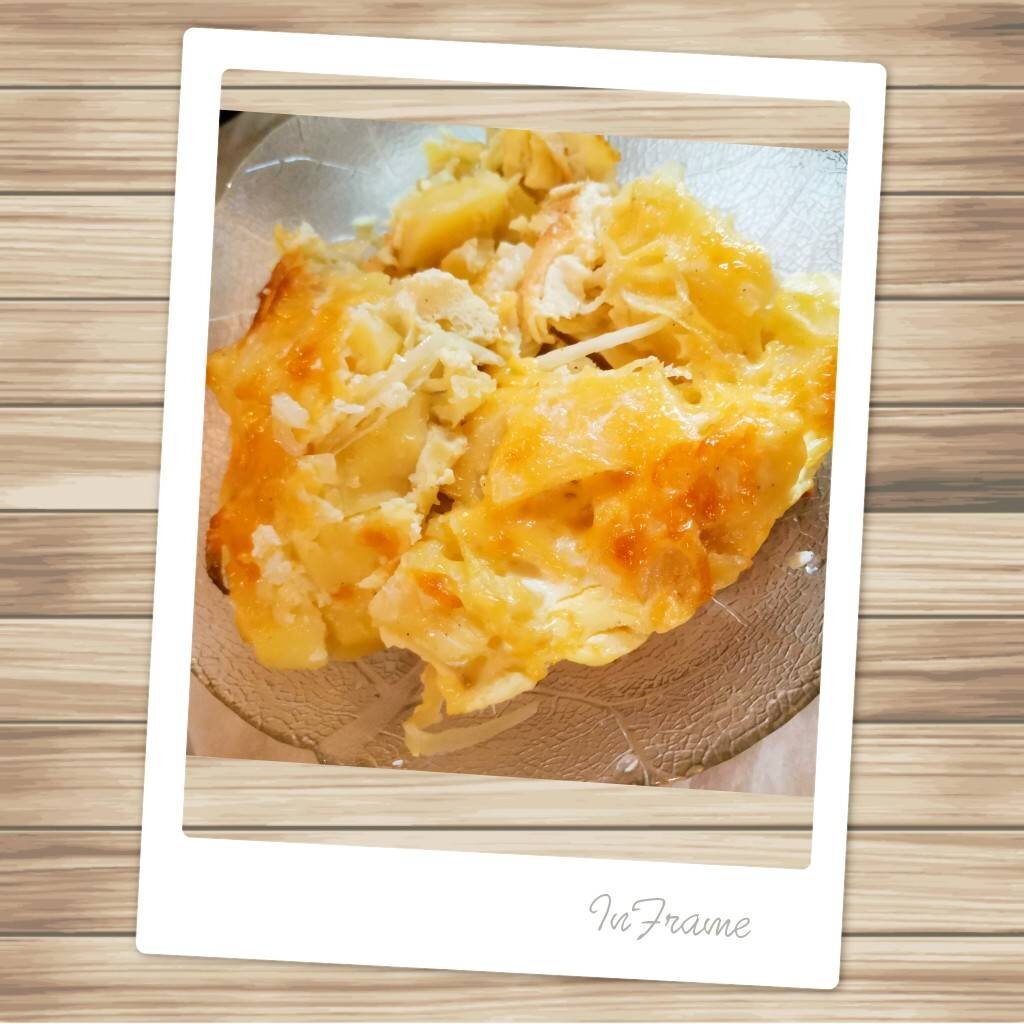 Ингредиенты: Картофель, Лук, Сыр, Яйца, Сметаны, Муки, Соль, перец, Сливочное масло