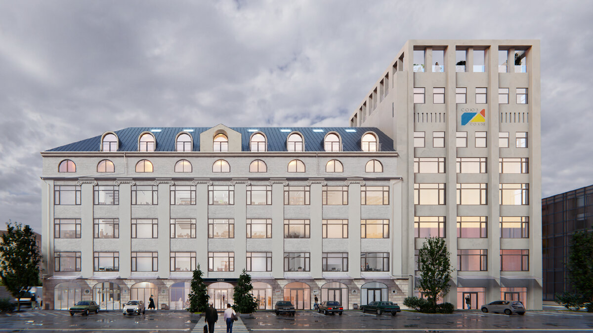 МФК СОЮЗ — новый проект многофункционально комплекса в ЦАО. Переведеновский переулок начинается от Спартаковской площади и выходит на Бакунинскую улицу. В пешей доступности станции метро Бауманская и Электрозаводская. Транспортную доступность обеспечивают близость ТТК, Рубцовская набережная и ж/д вокзал. Семиэтажное здание площадью 8479 м2, расположено на охраняемой территории. Над концепцией объекта работало архитектурное бюро RAY, компания стремилась применить стильный дизайн и продуманную организацию пространства для коллективного пользования– co-use. Поэтажная перепланировка позволила реорганизовать офисы и места общего пользования в открытую рабочую среду, а подвальные помещения - в удобные зоны хранения. Первый этаж отведен под торговые помещения. Их площадь составляет 6000 м2. В созданной зоне уличного ритейла разместятся кафе, аптеки и салоны красоты. Благоустроенная прилегающая территория с паркингом добавляет комфорта и создает уютные зоны отдыха. Двухэтажные пентхаусы распол