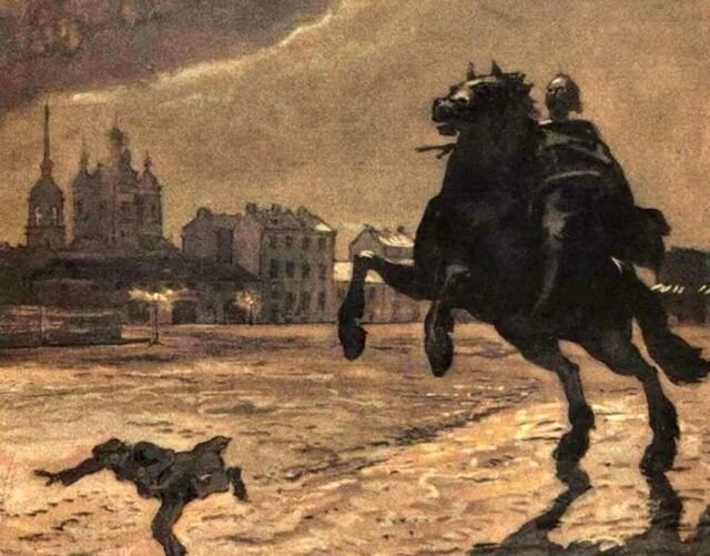 Перечитайте как-нибудь на досуге "Медного всадника". Того самого, из школьной программы: "На берегу пустынных волн...". Там скрещиваются две сюжетные линии. Первая – восторг Пушкина по поводу Петербурга и Империи, ее величия и военной мощи. Люблю воинственную живость Потешных Марсовых полей, Пехотных ратей и коней Однообразную красивость, В их стройно зыблемом строю Лоскутья сих знамен победных, Сиянье шапок этих медных, Насквозь простреленных в бою. Люблю, военная столица, Твоей твердыни дым и гром... Вторая линия – о несчастном Евгении, раздавленном разбушевавшейся стихией. Но не только стихией. Наводнение убило близких Евгения, но его самого психически растоптал, лишил разума "кумир на бронзовом коне". И, озарен луною бледной, Простерши руку в вышине, За ним несется Всадник Медный На звонко скачущем коне; И во всю ночь безумец бедный, Куда стопы ни обращал, За ним повсюду Всадник Медный С тяжелым топотом скакал. Страдающий маленький человек и Великая Империя. Пушкин сочувствует мале