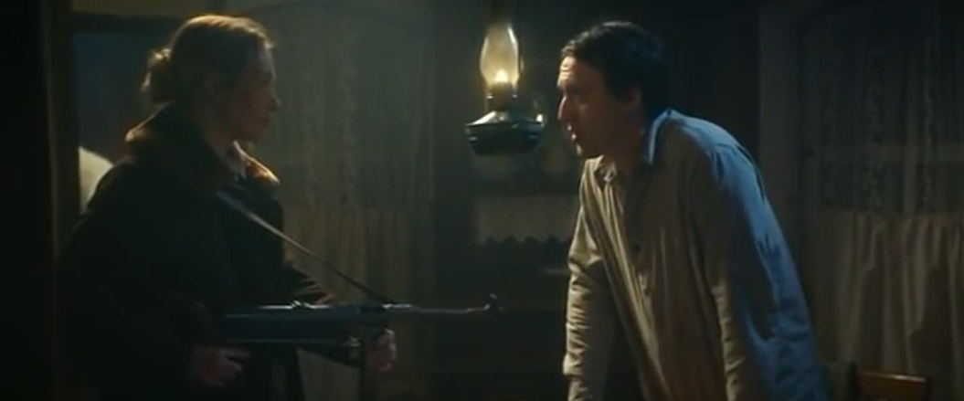 Ну а наши герои вместо того что бы отправится дальше в сторону Москвы, зачем то ночью уже возвращаются на разгромленную базу партизан, где Маша находит убитого Пашу. Ну а Лютый получает пулю в спину от типа помирающего советского партизана, который хочет и Машу подстрелить, но у него ничего не получается ведь у неё икона.