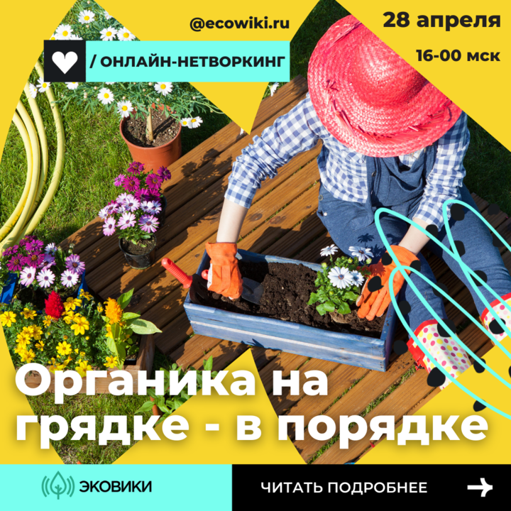 28 апреля в 16:00 мск платформа Ecowiki.ru проведет бесплатный онлайн-нетворкинг «Органика на грядке — урожай в порядке». Эксперты по органическому земледелию обсудят с участниками, как получить здоровый и богатый урожай без использования химикатов и минеральных удобрений. Участники мероприятия узнают: Эксперты нетворкинга: Владимир Масалаб, основатель Центра Комплексной Пермакультуры «Мера», пермакультурный дизайнер-практик. Лариса Завацкая, блогер, основательница дачного клуба, эксперт в органическом земледелии. Валерия Букина, директор Российского центра пермакультуры Хольцера, эксперт пермакультуры, исследователь сложных живых систем человека, социума и природы. Встреча пройдет в формате живого общения. У каждого гостя будет возможность задать вопросы экспертам, поделиться собственным опытом и обменяться контактами с другими участниками. Принять участие в онлайн-нетворкинге может любой желающий. Для этого необходимо предварительно зарегистрироваться по ссылке: ecowiki.ru/webinar/ne