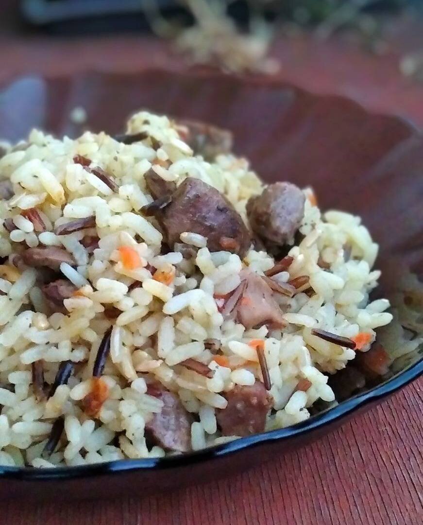 Ингредиенты: куриных сердечек, куриных желудков, луковица, морковь, соль, перец, специи, риса (у меня была смесь из 4-х видов риса)