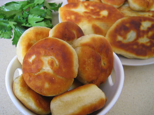 Ингредиенты: Для теста:, кефира, растительного масла + 0,5 стакана для жарки и смазывания теста, соли, сахара, соды, яйцо, муки, Для начинки:, вареные картофелины, консервированного тунца, луковица, укропа, соль , перец