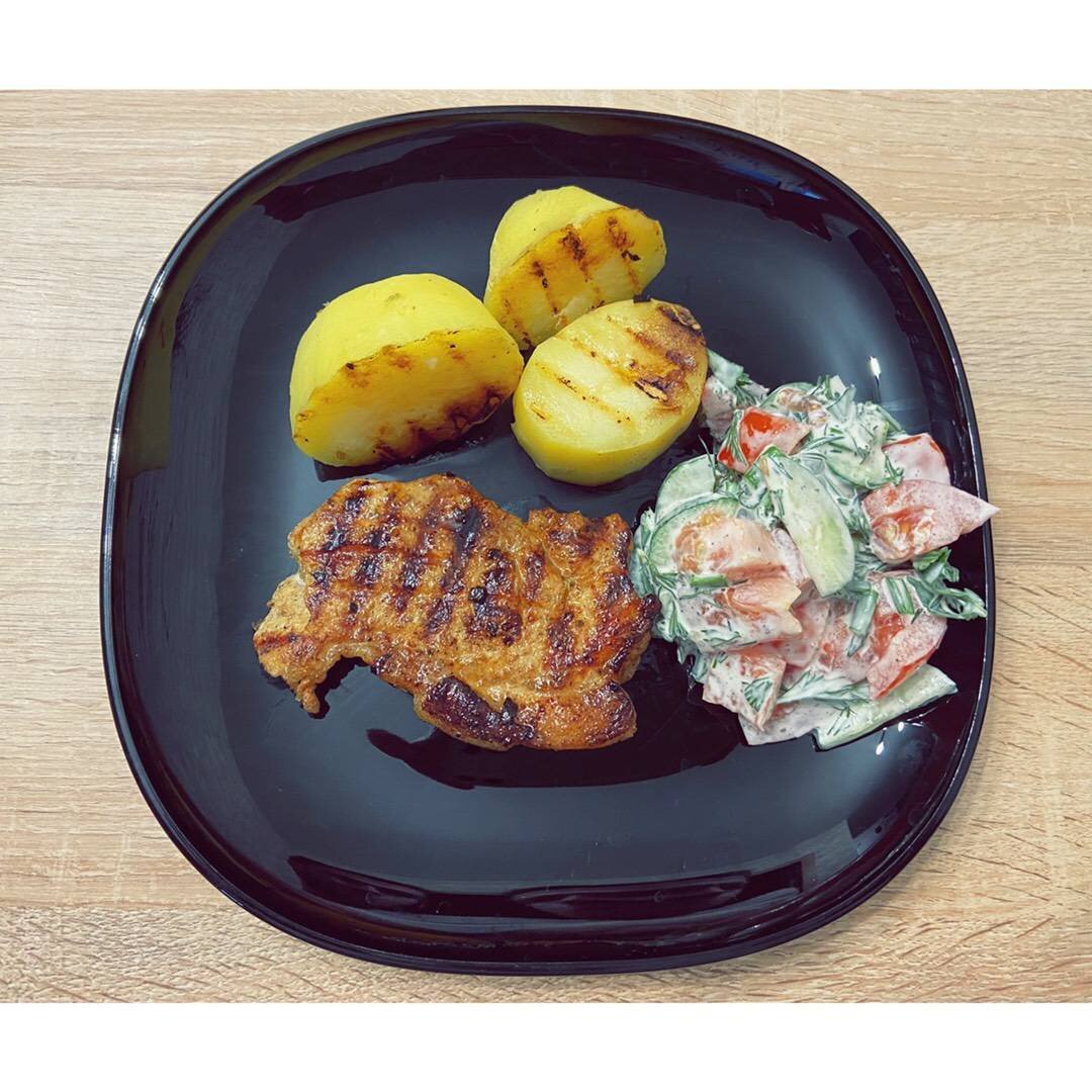 Сковорода гриль - это лучшая, пожалуй, вещь на моей кухне☺️ Ингредиенты: свинина, репчатый лук, приправа для мяса, соль, смесь перцев, сливочное масло Способ приготовления: Свинину моем, режем на стейки, просушиваем бумажным полотенцем. Добавляем к стейкам нарезанный кольцами лук, солим, перчим, добавляем приправу для мяса. Перемешиваем. Убираем в контейнер, накрываем пищевой пленкой и отправляем его в холодильник на пару часов. По истечении 2-х часов достаём мясо. Разогреваем сковороду гриль, смазываем ее кусочком сливочного масла. Выкладываем стейки на сковороду, готовим по 5 минут с каждой стороны. Проверяем на готовность сделав небольшой надрез в центре стейка, если сок светлый, мясо готово. Приятного аппетита😋
