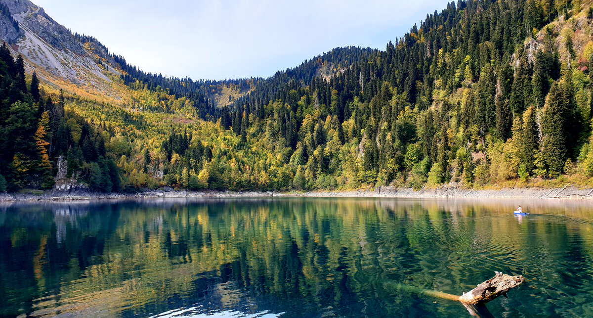 Привет, камрады. По просьбе подписчиков, в соавторстве со старейшим краеведом Абхазии, Эдуардом Чернопятовым, я знакомлю вас с ТОП - 50 лучших туристических объектов Абхазии. С ТОП-50 Вы можете ознакомиться здесь.. Малая Рица, несомненно, одно из самых красивых высокогорный озер Кавказа. А 1891 году, во время сильного землетрясения, обрушившаяся часть горы Пшагишхи образовала дамбу. В начале завала, на 335 м. выше Рицы образовалось озеро - Малая Рица. К нему ведет крутая лесная тропа (5 км в один конец). Проложенная выше старой тропы, она меньше подвержена завалам и оползням, имеется маркировка на деревьях. На полпути, после выполаживания тропы минуем похожее на канал лесное озеро с прозрачной водой. Даже на 3-х метровой глубине виден каждый камушек, затонувшие листья. Дальше тропа становится чище. Далее по тропе можно сбиться с маршрута, в местах, похожих на развилку (их будет 2) нужно сворачивать вправо. И, наконец, за деревьями разливается яркая синева озёрной глади. Спускаемся