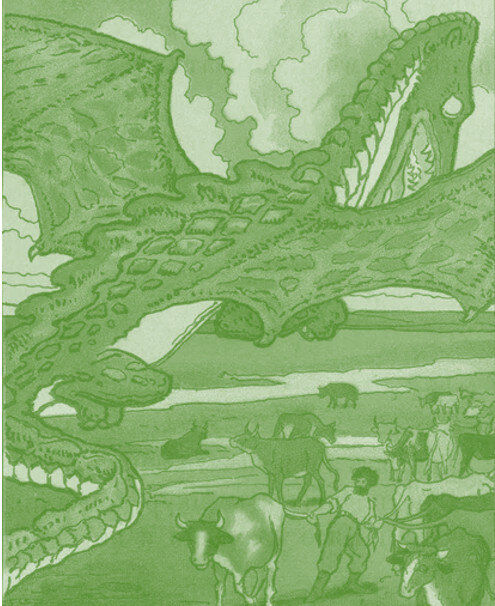 Змей ждал, пождал, да не стерпел, сам к стаду мигом прилетел.