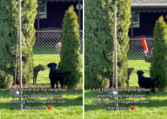 Однажды американка Бритни услышала на заднем дворе лай своего 5-летнего лабрадора Баундера. Она вышла посмотреть, что произошло, и увидела что-то странное. Баундер лаял на соседа, держащего в руках игрушечный пистолет. Он «стрелял» в собаку мячиками со своего участка, а пес приносил их ему обратно — он даже выкопал для этого специальную яму под забором. Девушка узнала, что они часто так играют, и поблагодарила мужчину. Видимо, псу понравилось, как сосед играл в такую же игру со своей собакой Лайлой, и он тоже решил присоединиться. Благодаря этому событию соседи сблизились и решили не закрывать проход между участками, чтобы собаки могли всегда играть вместе.