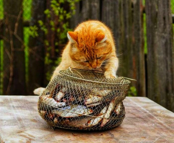 У речки сосед ловил рыбу, а в ведре уже трепыхалось полдюжины жирных карасей. Бесшумно Тихон подкрался и выцепил лапой одного. Дергается, зараза! Как хорошо, что рыбы молчаливы. Ухватившись зубами за хвост, кот поволок добычу в дом. Идти было неудобно, рыба вырывалась и мешалась между лапами. Гордой походкой кототерминатора он все же добрался до пункта назначения и плюхнул грязного карася у ног Марии.