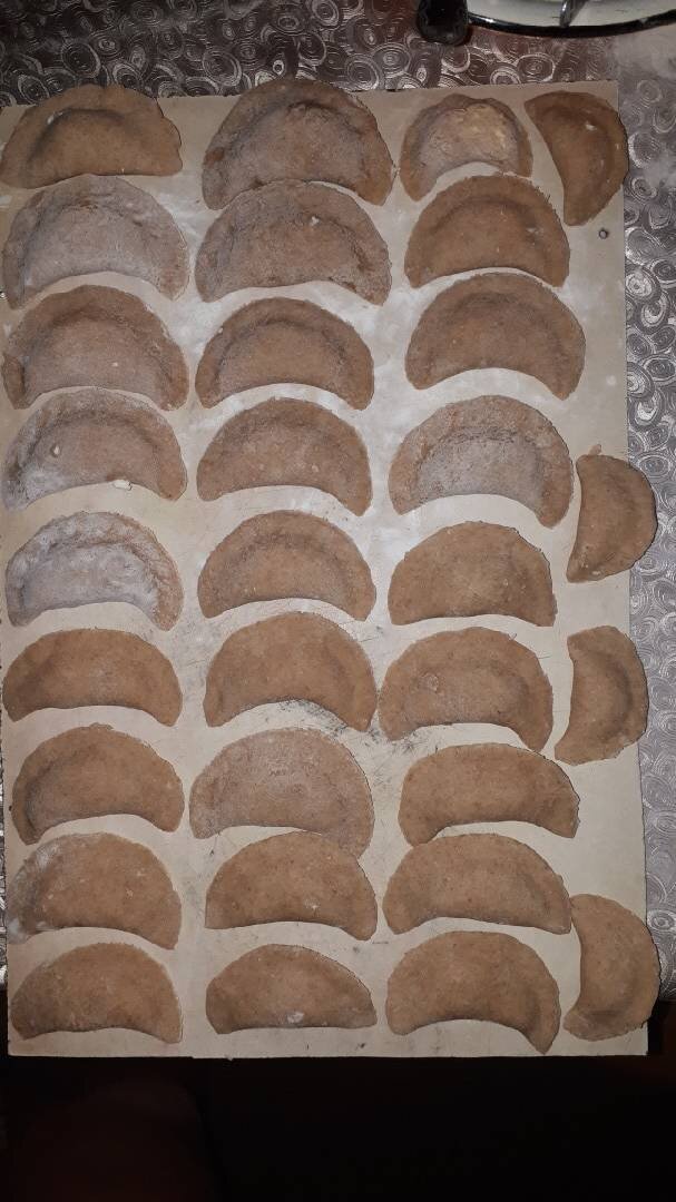 Соединить края кружочка и защипнуть так, чтобы начинка оказалась внутри (получатся заготовки похожие на полумесяцы)