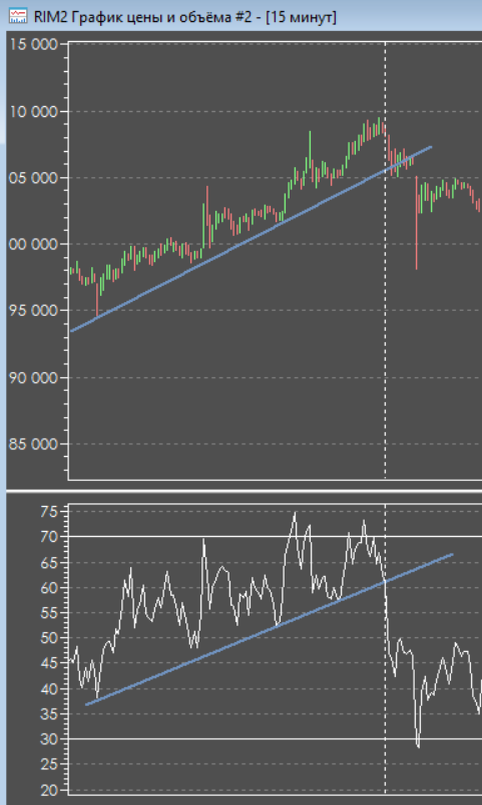 Индекс относительной силы (RSI) - это осциллятор импульса, разработанный Дж. Уэллсом Уайлдером, который измеряет силу тренда и вероятность его смены для торговых инструментов (акции, товарные фьючерсы, облигации и т.д.) за определенный период времени. Целью индикатора RSI является измерение изменения ценового импульса. Это опережающий индикатор, который широко используется техническими аналитиками по всему миру. RSI можно использовать для определения общего тренда. Он считается перекупленным, когда поднимается выше 70, и перепроданным, когда опускается ниже 30 Кроме того, RSI также можно использовать для поиска провальных колебаний, расхождений и пересечения центральной линии. Расчет RSI Формула для расчета индекса относительной силы выглядит следующим образом: RSI = 100 – 100 / (1 + RS) RS - Средняя прибыль за указанный период/ Средний убыток за тот же период Значение индекса относительной силы по умолчанию равно 14, но вы можете изменить это значение, чтобы уменьшить или увеличить
