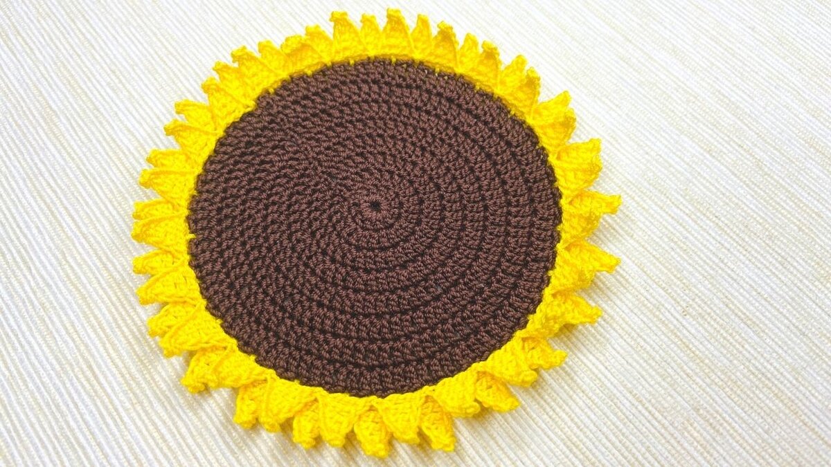 Мастер-класс по вязанию крючком маленькой салфетки в виде подсолнуха.