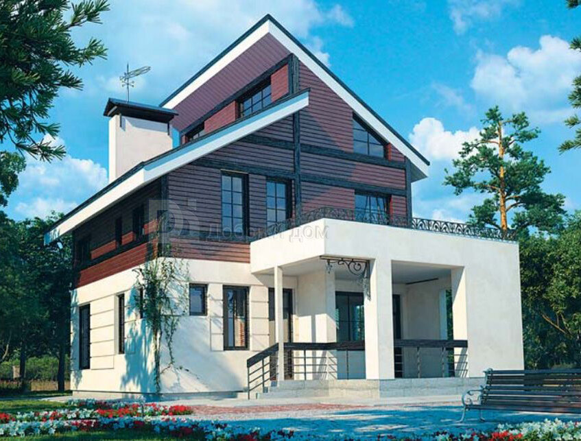 Проект двухэтажного дома AS-1688 с мансардой в стиле хай тек