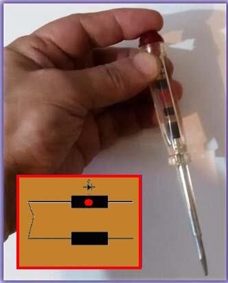 Данный электронный индикатор - отвертка хорош тем, что он имеет двойное назначение: может выполнять функции фазоуказателя и пробника. Модернизация индикатора (1), при выполнении функции пробника, сводилась к разработке съемного второго электрода, иначе пришлось бы использовать для этого органы человека. 1. Был осуществлен реверс функции одного электрода - жала отвертки на другой торец индикатора, где для этого был установлен заточенный винт (2), который стал выполнять его функцию. 2. На жало отвертки надет переходник от второго электрода. Для переходника был использован колпачок фломастера (3), корпус которого был использован для установки в нем второго электрода. Второй электрод электрически связан с жалом отвертки с помощью гибкого провода. Один конец провода в переходнике был припаян к согнутой в двое медной полоске, которая также фиксирует внутри жало отвертки, для этого был подобран фломастер с колпачком по его размеру Второй конец провода в фломастере припаян к жесткому э