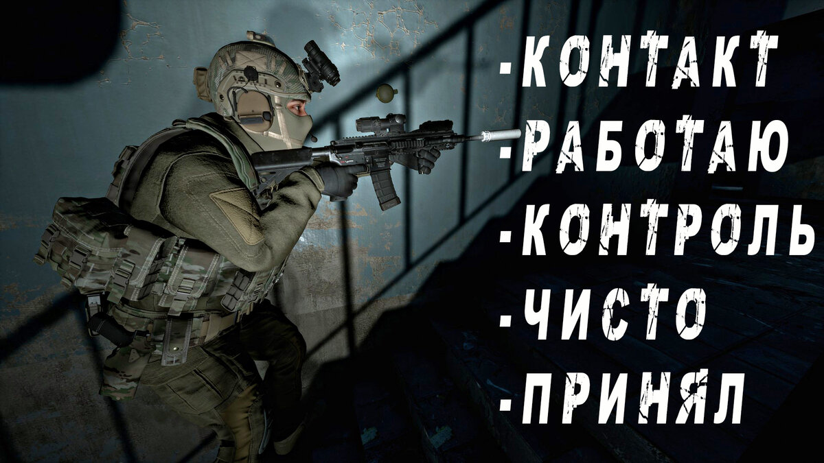 Контакт - встреча с противником, когда вы уже вступили в бой. В редких случаях применяется при условии обнаружения людей, но вы точно не уверены вооруженный он или нет - "Наблюдаю 3 контакта, возможно гражданские". Здесь всегда важно дополнять информацию, чтобы не запутать своих товарищей. Также важно в случае огневого контакта дополнять местонахождение противника - "Контакт на 12 часов", "Контакт! Азимут 220", "Контакт! Противник на 2 этаже"