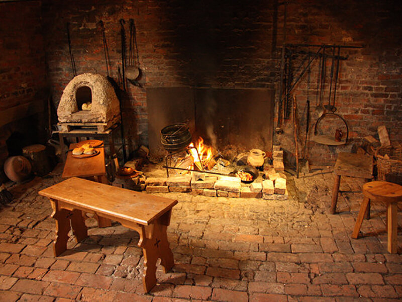 Некоторые средневековые художники донесли до нас своё представление о прародителе каминов, который представлял собой достаточно неуклюжий домашний очаг. Тем не менее, это было своего рода сакральное место, хранившее не только физическое тепло, но и главные семейные ценности в целом. Показательно, что у старинных очагов зачастую не было дымоходной трубы, и дым выходил через отверстие в потолке. Понятно, что такие «удобства», которые имели место и в русских избах, зачастую заканчивались угарным отравлением всех членов семьи. Тем не менее, философия камина пережила века, представая сегодня перед нами во всём великолепии передовых технологий и выразительных дизайнерских идей.