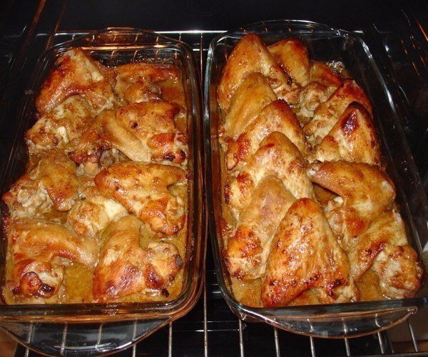 ➖1. Куриные крылышки, запеченные по-простому Понадобится: 1 кг крылышек куриных, по ½ стакана майонеза или сметаны и кетчупа или томатной пасты, перец, соль. Как приготовить простые куриные крылышки в духовке. Перемешать кетчуп с майонезом, крылья промыть, натереть перцем и солью, полить смесью, перемешать и на полчаса оставить. Выложить крылья на застеленный фольгой противень (можно слегка смазать ее растительным маслом), запекать 30-40 мин в разогретой до 180 градусов духовке. Добавьте к кетчупу с майонезом пропущенный через пресс чеснок, свои любимые специи и приправы – например, паприку, мускатный орех, сушеные травы, и блюдо заиграет новыми оттенками вкуса. ➖2. Куриные крылышки, запеченные в соево-горчичном соусе Понадобится: 700 г куриных крылышек, по 2 ст.л. соевого соуса, горчицы и майонеза, 2 зубчика чеснока, 1 ст.л. хмели-сунели. Как запечь куриные крылышки в соево-горчичном маринаде. Перемешать майонез с соевым соусом, горчицей, хмели-сунели и пропущенным через пресс ч