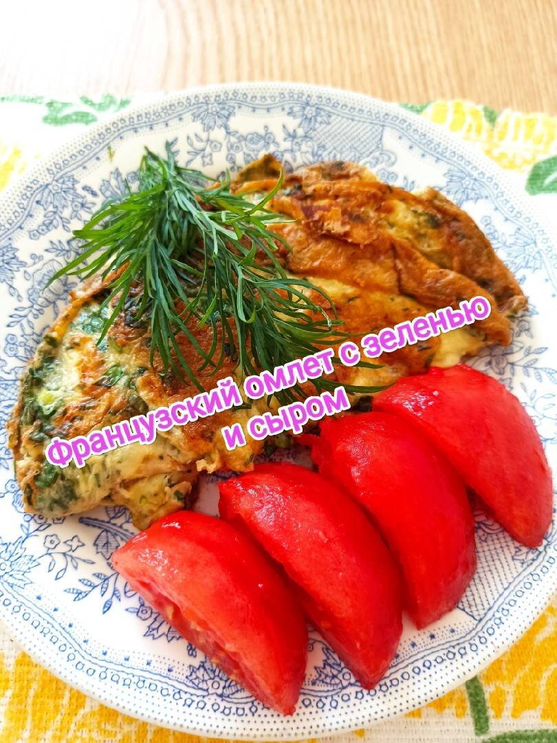 Сыр мелко натереть. Выложить на один край омлета и свернуть его пополам. Выключить огонь. Дать ещё секунд 30 постоять. Сыр внутри расплавится. Подавать горячим, пока сыр замечательно тянется. Сверху украсить/посыпать зеленью. Приятного всем аппетита! 😋👍🍅