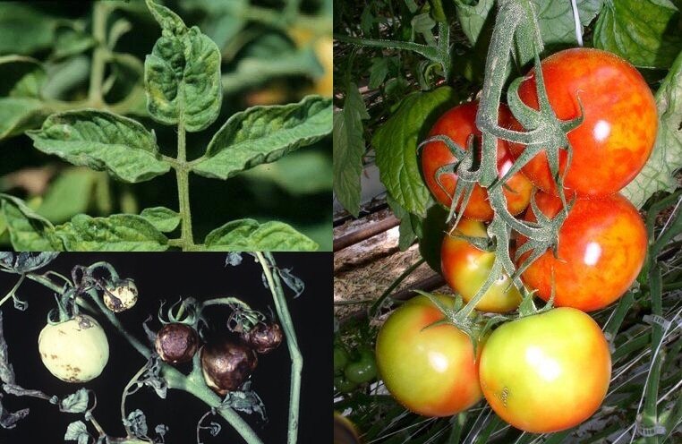 Для того чтобы помидоры дали богатый урожай, необходимо научиться своевременно определять наличие вредителей или болезней. Важно знать как с ними бороться и уметь применять эти знания на практике. Болезни томатов бывают различных видов: При грибковых заболеваниях томатов наблюдается высокая влажность и повышенная температура воздуха. Важно знать: главная опасность грибковых инфекций в том, что они быстро передаются соседним кустам. Вот почему в данной ситуации требуется незамедлительное принятие мер для их лечения. Наиболее распространённое заболевание проявляется в виде потемнения частей кустарника, и носит название – Фитофтороз. Наибольшую эффективность в борьбе с ним получили препараты Барьер и Заслон. При сильно влажной и тёплой погоде может наблюдаться так называемая «сухая пятнистость» (Альтернариоз), которая появляется в виде жёлто-черных пятен сначала в районе листьев, а затем и на плодах помидор. Внимание: наиболее подвержены данному заболеванию раннеспелые сорта. 👉Ознакомьте