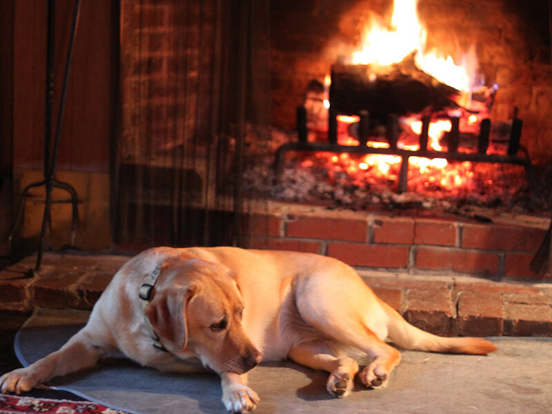 В большинстве случаев домашние животные в отличие от детей правильно реагируют на горящий камин. Ни одна кошка или собака не станет лезть к открытому огню, следуя своим природным инстинктам. А вот понежиться вблизи уютного очага любят все домашние питомцы. Но не стоит забывать о том, что сильная сезонная линька может стать причиной большого скопления волос на покрытии, прилегающем к каминной топке. И такое явление значительно понизит пожаробезопаность камина. Поэтому при наличии домашних животных следует как можно тщательнее убирать предкаминное пространство.