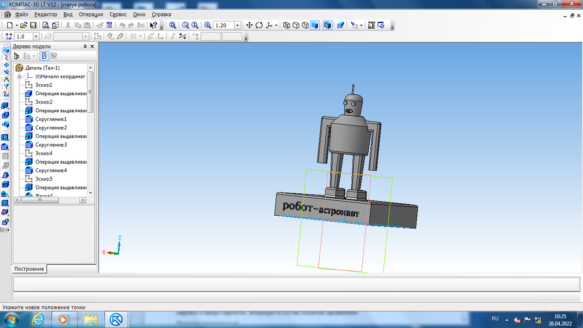 Арт-объект "Робот-астронавт". Выполнена в программе "Компас 3D". Дрёмин Яков Константинович, ученик 10 класса МАОУ СОШ №41 им.Аксаковой О.Г. с.Аксаково Белебеевского района Республики Башкортостан. Номинация ""Арт-город". Всероссийская креативная олимпиада "Арт-Успех".